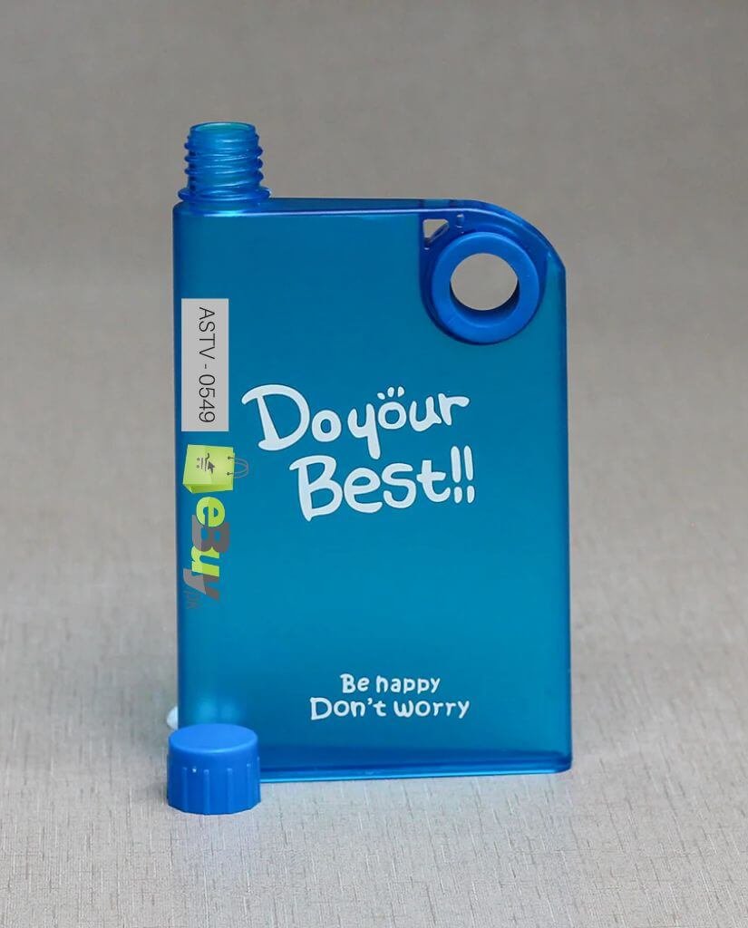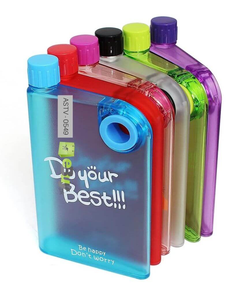 A5 Memo notebook water bottle is a rectangular, leak-proof bottle with a tightly sealed design. It can easily fit in your document bag or your backpack. This durable, leak proof bottle is also freezer proof designed to fit where you need it; stand up unassisted environmentally responsible with recycled plastic and reduction of single use. Bottles are not to be exposed to hot or carbonated liquids. This convenient and environmentally responsible water bottle offers a sleek new take on the traditional cylindrical water bottle design. No bigger than an iPad and flat instead of round, it slides easily into your messenger bag, backpack, or purse and allows you to maximize space in your bag. Made of BPA-free Tritan and dishwasher safe, this is the only water bottle you will ever need. Resembling the shape of a piece of paper, the memo bottle is a slimline, premium designed, reusable water bottle which suitably slides into your favorite carry bag alongside your computer, books and valuables. The memo bottle brings leak-proof hydration to a new level of style and efficiency. The A5 memo bottle is ideal for travelling, the office or coupled with college books. Holding 420ml, the memo bottle is a reusable water bottle for the premium drinker. It slides into your bag.
