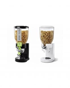Cereal Dispenser (Single) is suitable for dry foods like cereal, trail mix, candy, granola, nuts, beans, rice, dispenser keeps food sanitary and germ-free. Cereal is a great way to start the day. By giving you the fibre and nutrients that you need to fuel your morning, you can survive until lunch without needing to snack. But in the blind hurry of getting ready for work and school, it’s all too easy to skip breakfast or grab something less healthy rather than rifling through the cupboards, making a mess and having to measure out your portion sizes. If you live with kids (or a messy spouse or flatmate), you’ve probably experienced stepping on crunchy cereal that has been spilled on the kitchen floor or going to take a bite of your favorite cereal to discover that it’s gone stale in the box! Eliminate that mess and waste with cereal dispenser. The chute-design opening won’t crush cereal as it is dispensed and the spring-loaded, non-slip levers allow for controlled, one-handed dispensing. The levers are on either side of the Dispenser to accommodate right- and left-handed users. Two silicone seals on Canister lid and inside Dispenser help keep cereal fresh and the removable tray keeps counter tops clean. Perfect for both traditional and modern kitchens, they look great on your worktop and mean that you won’t forget to grab a bowl of cereal when you’re in a hurry!