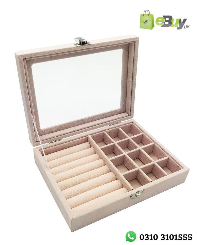 Clear Lid Jewelry Organizer Box Lockable Case with Dividers for Rings, Earrings, Necklace
