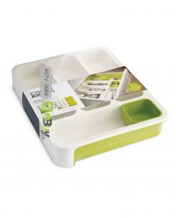 Drawer store expandable cutlery tray for cutlery drawers & never have to deal with a tray that jostles around every time you open or shut the drawer. deal for small or large cutlery drawers & never have to deal with a tray that jostles around every time you open or shut the drawer. Four deep compartments keep cutlery contained while the small, moveable storage dish is idea for corralling everything from corncob holders to wine stoppers. This smart storage solution has four deep-sided compartments that let you separate your knives, forks and spoons, as well as an area for larger utensils or knives plus a handy, moveable dish for small loose items. Utensil area for knives or larger kitchen tools. Handy moveable storage dish for small items.