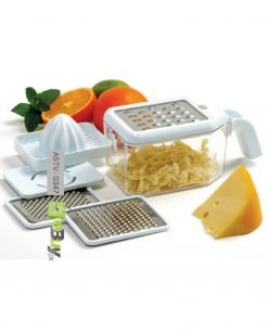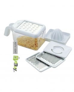 You’ll find a lot of uses for this Multi grater, juicer, and egg separator. This Multi grater is just right for grating hard cheeses like parmesan with three different blade inserts. It also has a juicer insert and an egg separator insert. It has a built in catcher with a lid. Grate and measure hard cheeses, chocolate, and spices. Comes with juicer and egg separator attachments.